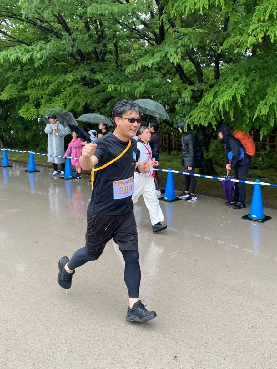 2025年5月25日に金沢城公園にて行われた「金沢城リレーマラソン」に参加しました。22名が参加し、雨が降る中での開催となりましたが、参加した全員でタスキをつなぎ、134チーム中59位という成績を収めました。