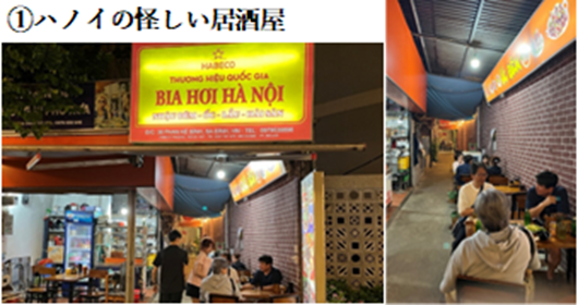 - ハノイの怪しい居酒屋(夜も遅く飛行機でヘロヘロでしたが、思い切って食べに行ってよかったです。)