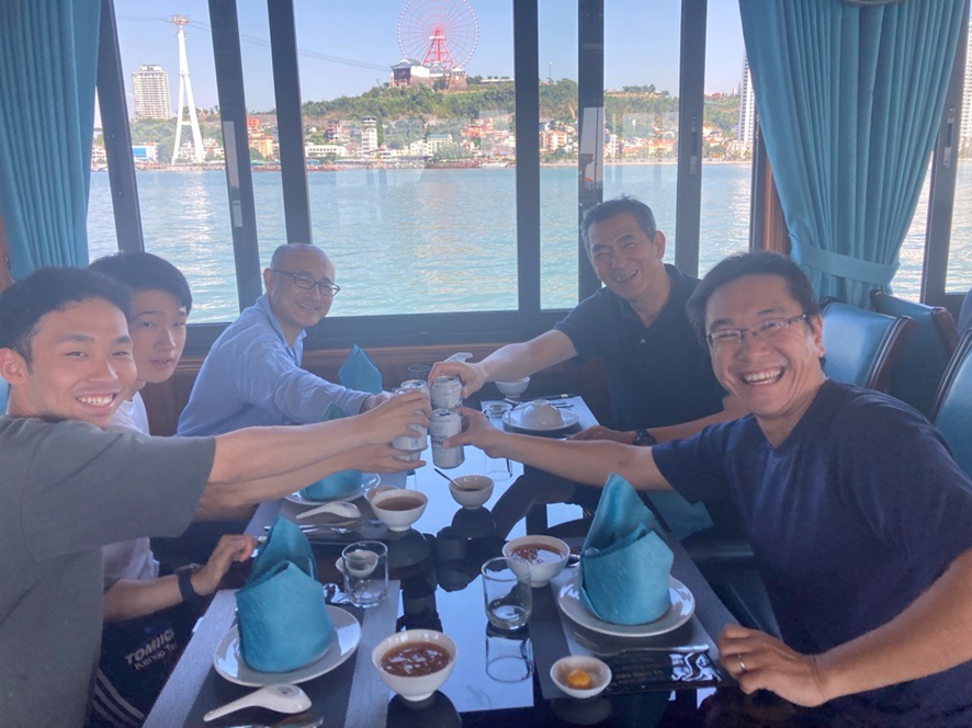 また船の上では、同じ会社の仲間と景色を眺めながら話したり、写真を一緒に撮るなど、普段よりも距離が縮まったように感じました。海を眺めながらいただいた蒸しエビやイカの揚げ物は絶品で、すごく美味しかったです。